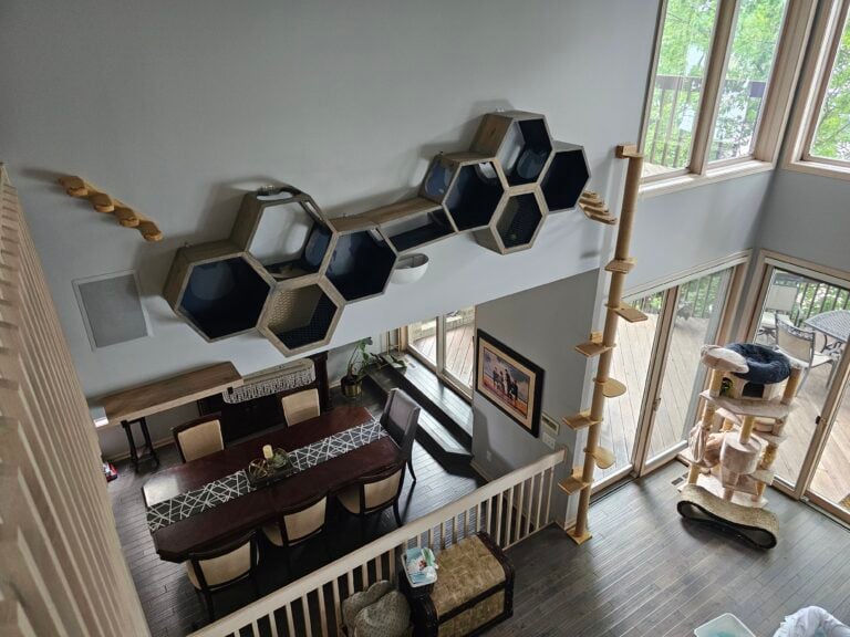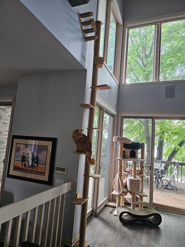 But our ingenuity didn’t stop there. We designed a perfect environment for the family pet by installing a cat door and cat climber, making the feline member of the household as comfortable as possible.